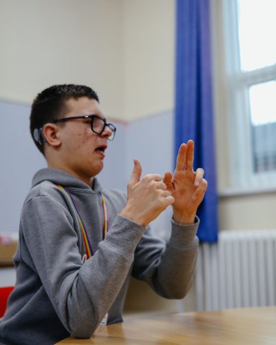 Our Deaf Education Centre offers a dedicated space for deaf students, led by specialist staff and supported by Communication Support Workers. We promote British Sign Language (BSL) as part of everyday college life, celebrating deaf culture and identity while ensuring every student can learn in their preferred language.